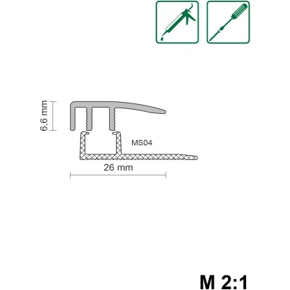 Das Abschlussprofil Nr. 40 elox. Alu clipbar 21 x 7 x 900 mm Silber ist eloxiert und kann als Abschlussprofil verwendet werden. Die Höhe des Profils wurde speziell an die Stärke von LVT-Böden angepasst. Die Montage erfolgt mittels Clipschiene, die abdeckbare Belagshöhe ist 4 – 7,5 mm.