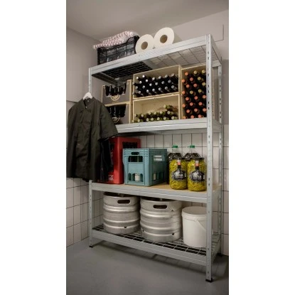 Dank der 100 % verzinkten Stahlkontruktion ist das Regal korrosionsbeständig und eignet sich ideal für den Einsatz mit hoher Luftfeuchtigkeit Drinnen als auch Draußen. Dabei ist es insbesondere für die Lagerung von Flüssigkeiten und ölhaltigen Produkten, Pflanzen, Gartengeräten, Werkzeugen, Getränken und Winter- oder Wassersportmaterial geeignet.