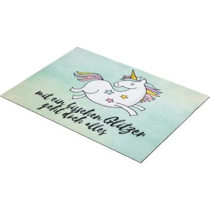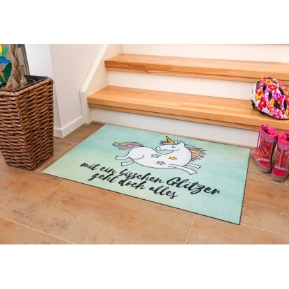 Die Astra Fußmatten Happy Home sind jetzt auch in den beliebten Einhorn-Designs erhältlich. Dank ihrer Nutzschicht aus 100 % Polyamid sind sie bei 30 Grad waschbar. Der mit Vinyl beschichtete Rücken sorgt außerdem für Rutschfestigkeit, sodass die Matten stets an der gewünschten Stelle bleiben.