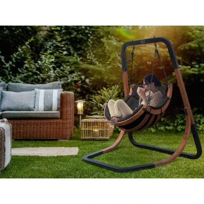 Entspannen Sie sich diesen Sommer mit dem Axi Hängesessel Capri mit Gestell. Dieser luxuriöse Hängestuhl aus echtem Veloursleder bietet höchsten Komfort und ist der perfekte Ort, um die Sonne zu genießen und zu entspannen. Der Hängestuhl hängt an zwei Aufhängepunkten am robusten Gestell, das aus Lärchenholz und Stahl gefertigt ist. Das Lärchenholz stammt aus nachhaltig bewirtschafteten Wäldern und ist von Natur aus resistent gegen Witterungseinflüsse wie Regen, was es zu einer umweltbewussten Wahl macht.