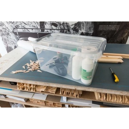Die Verstauungsboxen sind modular aufgebaut. Sie können zudem gestapelt oder verschachtelt werden, um weiteren Platz zu sparen. Die Boxen sind mit einem Deckel und zwei Verriegelungen versehen, die für einen sicheren Verschluss und einen guten Schutz Ihres Hab und Guts sorgen. Gleichzeit werden sie auch vor Staub und Schmutz geschützt, weshalb Sie ebenfalls Kleidung etc. darin aufbewahren können.
