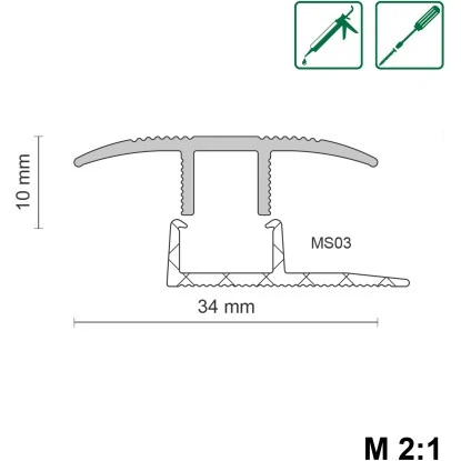 Das Bewegungsprofil Nr. 82 elox. Alu clipbar 34 x 11 x 900 mm Champagner ist eloxiert und kann als Bewegungsprofil verwendet werden. Es handelt sich hier besonders robuste Profile. Die Montage erfolgt mittels Clipschiene, die abdeckbare Belagshöhe ist 7 – 11,5 mm.