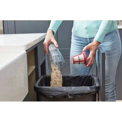 Der Schmutzfangbehälter hat einen transparenten Bereich, so dass man jederzeit erkennen kann, wie viel Schmutz im Behälter ist. Dieser lässt sich leicht entfernen und somit mühelos leeren, ohne mit dem Schmutz in Berührung zu kommen. Für noch mehr hygienische Sauberkeit kann der Schmutzbehälter in der Spülmaschine gereinigt werden.