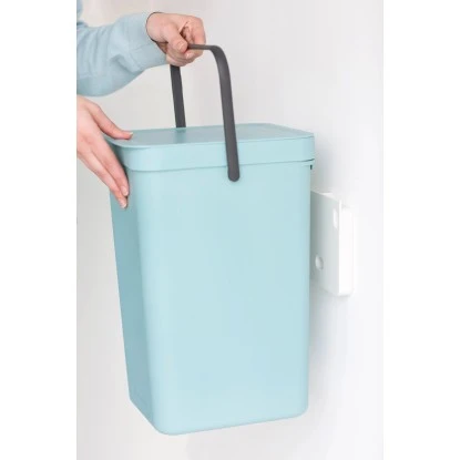 Der Brabantia Abfallbehälter Sort & Go 16 l in Mint eignet sich ideal für die Entsorgung von Flaschen, Kannen, Verpackungen oder anderen trennbaren Abfällen. Der große Henkel und der handliche Griff an der Unterseite erleichtern das Entleeren. Der Abfallbehälter kann wahlweise an der Wand angebracht oder freistehend platziert werden. Für eine einfache Montage liegen Einbaurahmen, Montagematerial und Anleitungen bei.