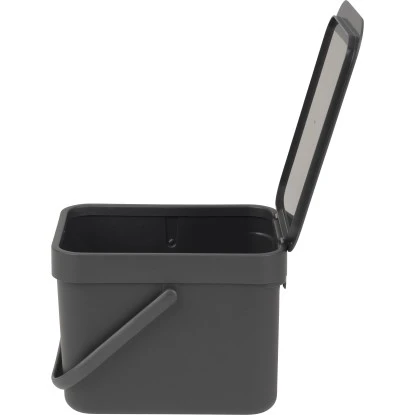 Dieser kleine 6 Liter Behälter eignet sich hervorragend zum Entsorgen von Obst- und Kartoffelschalen, Speiseresten und anderen organischen Küchenabfällen.