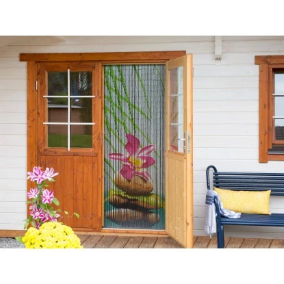 Der Dekorationsvorhang Stone aus handbemalten Bambusstäbchen eignet sich ideal als Raumteiler oder als Türvorhang. Er wurde aus 90 Strängen handgefertigt und ist blickdicht.