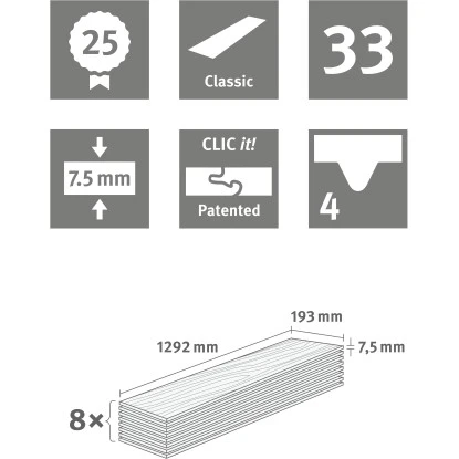 Der Designboden von Egger ist mit einem praktischen Klick-System ausgestattet. Dieses erleichtert Ihnen die Verlegung des Bodens. Die Verwendung eines Klick-Designbodens bringt mehrere Vorteile mit sich. Im Gegensatz zu einem verklebten Boden können Sie diesen direkt im Anschluss an die Verlegung betreten. Einzelne Paneele können bei Bedarf problemlos ausgetauscht werden. Auch das gestaltet sich bei einem geklebten Bodenbelag deutlich komplizierter.