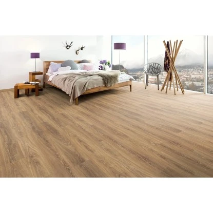 Der Laminatboden weiß mit seinem edlen und ansprechenden Holz-Dekor zu gefallen. Der Bodenbelag ist besonders authentisch und bringt jeden Raum besser zur Geltung. Aufgrund der typischen Maserungen ist die Holznachbildung kaum von einem echten Holzboden zu unterscheiden. Der Farbton verleiht Ihrem Wohn- oder Büroraum einen besonders edlen Touch. Die ruhige Optik sorgt für ein ansprechendes Gesamtbild und dank seiner Farbgebung können Sie den Laminatboden mit so gut wie jeder Stilrichtung kombinieren.
