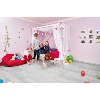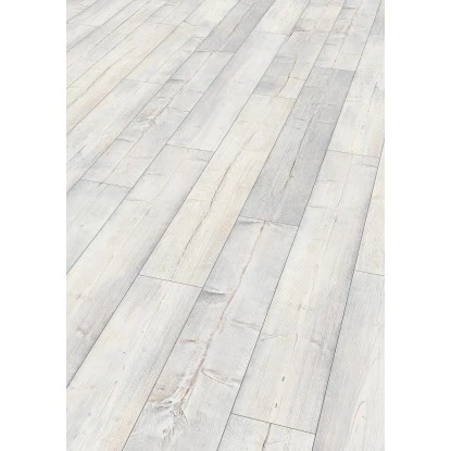 Der Egger Korkboden Home Comfort Villefort Pinie weiß im hellen Pinien-Dekor zeichnet sich durch sein edles und elegantes Design aus, das sich mit seiner Dielen-Optik ideal in jeden Wohnbereich einfügt.