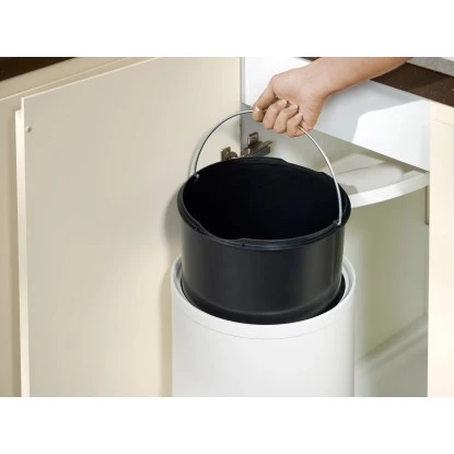 Der Einbauabfallsammler ist für Unterschränke mit einer Mindestbreite von 40 cm geeignet. Der Abfallsammler mit einem Volumen von 15 l hat die Maße 40 cm x 34 cm x 27 cm. Eine einfache Handhabung ist garantiert durch den herausnehmbaren Kunststoffeimer. Der Rumpf und der Deckel sowie die Ringe sind aus weißem Kunststoff.