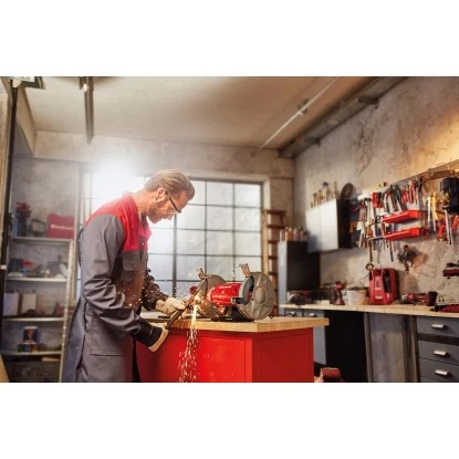 Die Einhell by kwb Keramische Schleifscheibe für Doppelschleifer ist eine Grobschleifscheibe mit dem Durchmesser von 200 mm und einer Breite von 25 mm. Der Lochdurchmesser beträgt 32 mm. Die Schleifscheibe hat eine Körnung von G36 und ist somit optimal für das Schleifen von Metall. Zusätzlich sind vier Verbindungsstücke mit einem Durchmesser von 25 mm, 20 mm, 16 mm und 12,7 mm enthalten. Die Scheibe kann in Verbindung mit dem Einhell Doppelschleifer TC-BG 200 verwendet werden.