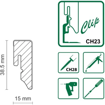 Diese FN Neuhofer Sockelleiste besteht aus MDF und ist mit einer bedruckten Dekorfolie überzogen. Die einfache Befestigung der Leiste mittels passendem Clipholder CH23 funktioniert sauber und schnell. Somit wird die Oberfläche der Leiste nicht durch Schrauben oder Nägel zerstört.