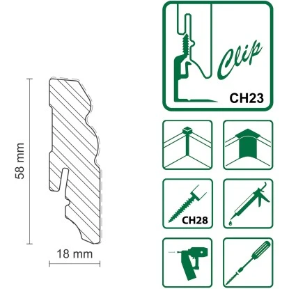 Diese FN Neuhofer Sockelleiste besteht aus Kiefer und ist Weiß lackiert. Die einfache Befestigung der Leiste mittels passendem Clipholder CH23 funktioniert sauber und schnell. Somit wird die Oberfläche der Leiste nicht durch Schrauben oder Nägel zerstört.