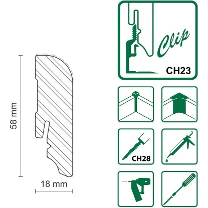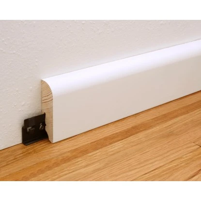 Diese FN Neuhofer Sockelleiste besteht aus Kiefer und ist Weiß lackiert. Die einfache Befestigung der Leiste mittels passendem Clipholder CH23 funktioniert sauber und schnell. Somit wird die Oberfläche der Leiste nicht durch Schrauben oder Nägel zerstört.