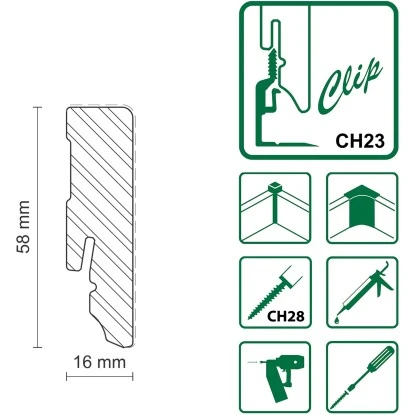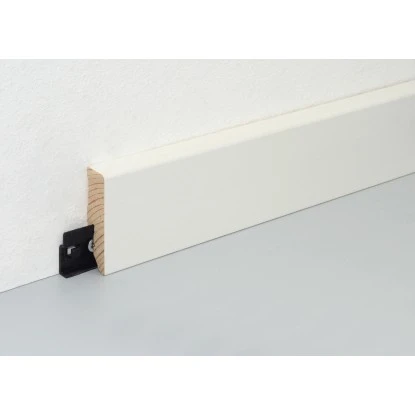 Diese FN Neuhofer Sockelleiste besteht aus Kiefer und ist Weiß lackiert. Die einfache Befestigung der Leiste mittels passendem Clipholder CH23 funktioniert sauber und schnell. Somit wird die Oberfläche der Leiste nicht durch Schrauben oder Nägel zerstört.