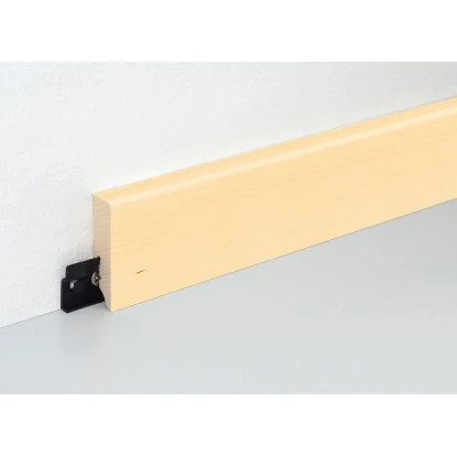 Diese FN Neuhofer Sockelleiste besteht aus Fichte oder Kiefer und ist mit Echtholz-Furnier überzogen. Die einfache Befestigung der Leiste mittels passendem Clipholder CH23 funktioniert sauber und schnell. Somit wird die Oberfläche der Leiste nicht durch Schrauben oder Nägel zerstört.