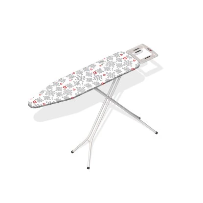 Der Bügeltisch Leo ist die einfache und robuste Lösung fürs Bügeln. Mit der kompakten Bügelfläche von 110 cm x 30 cm eignet er sich besonders für Wenigbügler und kleine Haushalte. Zusammengeklappt ist der Bügeltisch besonders platzsparend. Der Rahmen ist aus weißem Metall gefertigt, höhenverstellbar, und garantiert einen sicheren Stand. Das dekorative Crazy-Logo-Design des Bezugs rundet die Optik dieses Bügelbretts ab.