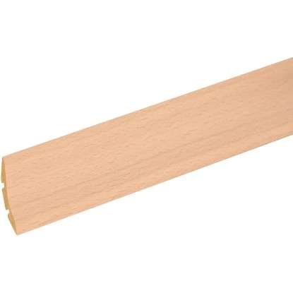 Diese Hohlkehlleiste SU001 furniert 26 x 26 x 2500 mm Buche Ton 0 Fichte aus Fichte ist mit einem Echtholz-Furnier aus Buche versehen. Sie wird zur Abdeckung von Fugen in Innenecken an Boden, Wand und Decke verwendet