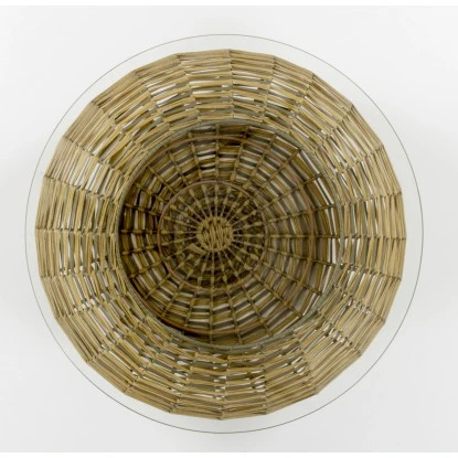 Der edle Kayoom Beistelltisch Baran in Bast-Optik ist schön anzusehen und praktisch in der Nutzung. Der natürliche Look sorgt für ein gemütlich warmes Ambiente in Ihrem Zuhause. Nutzen Sie den Rattan-Tisch als praktische Ablage oder stellen Sie ihn als Dekoration in den Wohnraum. Jeder der kugelförmigen Couchtische ist ein echtes Unikat, da sie im klassischen Stil per Hand geflochten werden. Sie erwerben mit dem Serviertisch in Hellbraun nicht nur ein formschönes Möbelstück, sondern auch ein klassisch schönes Wohnaccessoire in besonders guter Qualität. Die schlichte Farbgebung in Hellbraun lässt sich wunderbar mit vielen Einrichtungsstilen kombinieren. Der Tisch lässt sich wunderbar als Einzeltisch oder als Beistelltisch zu Ihren vorhandenen Möbeln nutzen. Die hochwertige Glasplatte bietet viel Platz zum Abstellen von Getränken oder gerade nicht benötigten Gegenständen. Auch im Außenbereich macht der Rattan-Tisch eine gute Figur.