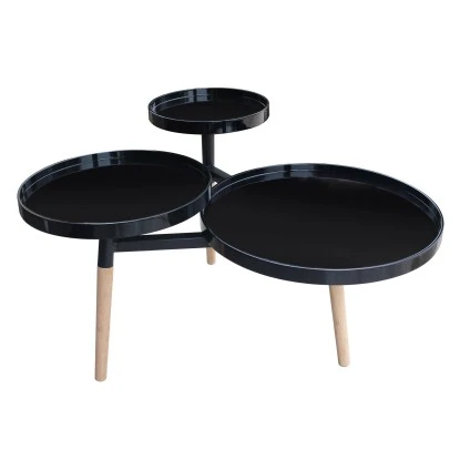 Egal, ob Sie den Design-Tisch als Serviertisch während des Fernsehabends oder in Form eines Deko-Tisches als Ablage für Kerzenständer, Vasen oder Deko-Figuren nutzen, er kann sich in jedem Wohnraum sehen lassen und wird garantiert nicht langweilig. Der Couchtisch ist in einem zeitlosen Schwarz lackiert und misst eine Länge von 86,5 cm, eine Breite von 71 cm und eine Höhe von 50 cm.