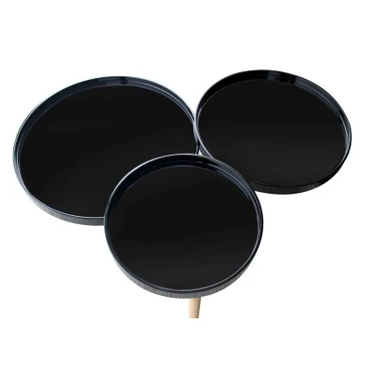 Der Kayoom Beistelltisch Butler zieht alle Blick auf sich mit seinem stufenförmigen Design. Drei runde, unterschiedlich große Tischplatten in Tablettform bieten eine großzügige Ablagefläche. Die MDF-Tischplatten sind mit einer Glanzbeschichtung überzogen, die für eine glatte, dekorative und gleichzeitig pflegeleichte Oberfläche sorgt. Durch ein farblich angepasstes Metallgestell sind die drei Tischplatten miteinander verbunden und bilden in Kombination mit den dekorativen Bambusbeinen eine stabile, stilvolle Gesamteinheit.
