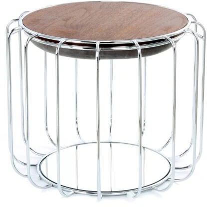 Indem Sie das Sitzkissen aus dem Gestell nehmen, umdrehen und wieder in das Gestell einsetzen, erhalten Sie im Handumdrehen einen attraktiven Beistelltisch mit Holztischplatte. Das Holz bildet eine schöne Einheit mit dem silbernen Metallgestell und bietet gleichzeitig einen attraktiven Kontrast.