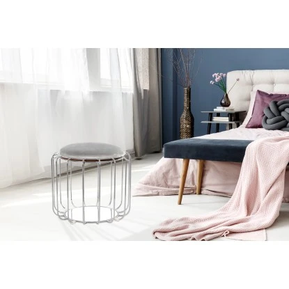 Mit dem Kayoom Beistelltisch-Hocker Prouf Comfortable erhalten Sie ein ganz besonderes Möbelstück, denn durch das wendbare Oberteil kann es ganz flexibel sowohl als Hocker als auch als Beistelltisch genutzt werden. Das edle Gestell aus Metall ist nicht nur elegant, sondern auch sehr stabil. Durch das offene Design und die Bodenfläche aus Spiegelglas strahlt der Hocker Eleganz aus und wird schnell zum Blickfang im Raum. Das dicke Sitzkissen in Grau ist mit einem samtweichen Bezug versehen, sodass Sie beim Sitzen angenehme Bequemlichkeit verspüren.