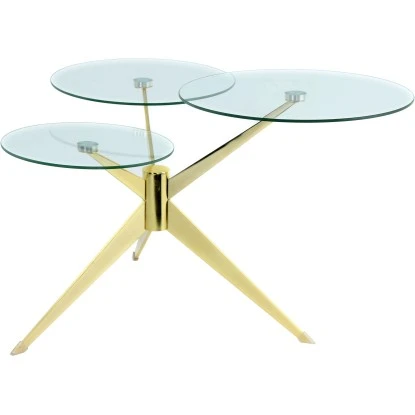 Der Kayoom Beistelltisch Triplet ist ein absoluter Hingucker. Drei runde, versetzt zueinander angeordnete Tischplatten bieten eine moderne Optik für moderne und klassische Einrichtungen und gleichzeitig flexible Nutzungsmöglichkeiten. Platzieren Sie dekorative Vasen und Figuren auf dem Couchtisch und nutzen Sie ihn gleichzeitig zur Ablage verschiedener Gegenstände und Utensilien. Ob als Beistelltisch im Wohnbereich oder als Ablageplatz für Schlüssel und weitere täglich genutzte Dinge im Flur, dieses Tischmodell ist in jedem Raum ein praktisches Möbelstück.