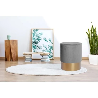 Bringen Sie mit dieser alternativen Sitzgelegenheit Schwung in Ihr Zuhause. Durch seinen weichen Bezug und den Fuß aus goldenen Edelstahl ist der runde elegante Hocker ein Blickfang in jedem Zimmer. Er kann vielseitig als Sitzmöglichkeit, Beistelltisch oder Ablage eingesetzt werden und kann dank des geringen Gewichts frei im Raum platziert werden. Das tolle Wohnaccessoire mit einer Höhe von ca. 42 cm kann mit bis zu 120 kg belastet werden und ist eine elegante Ergänzung für jeden Wohnbereich. Das schlichte Design des Hockers lässt sich harmonisch in verschiedene Einrichtungsstile integrieren und wird zum dekorativen Highlight in jedem Raum.