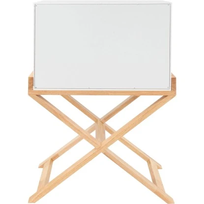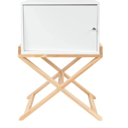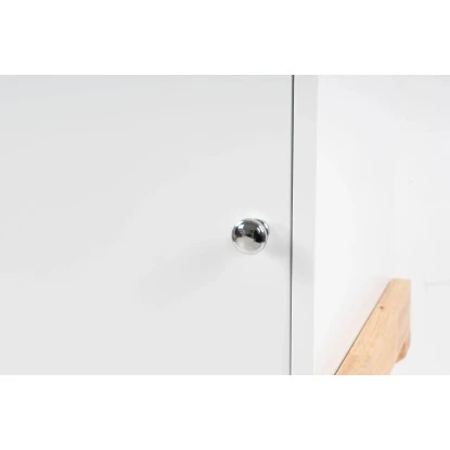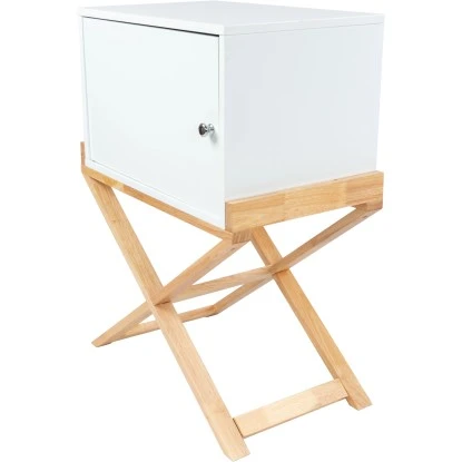 Einen schönen optischen Kontrast zu dem weißen MDF-Korpus des ca. 75,5 cm hohen und ca. 56 cm breiten Schränkchens bildet das natürliche Gestell aus Kautschukholz. Mit den richtigen Accessoires und Dekoartikeln setzen Sie Ihre Möbel in Szene und schaffen eine einzigartige Atmosphäre. Teppiche aus unifarbenem Hochflor oder mit dekorativem Design passen beispielsweise ideal zu dem schlichten Schränkchen.