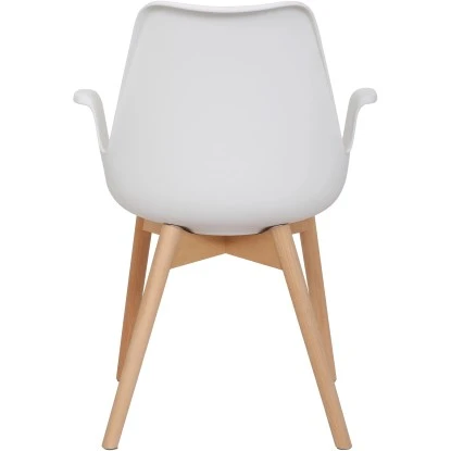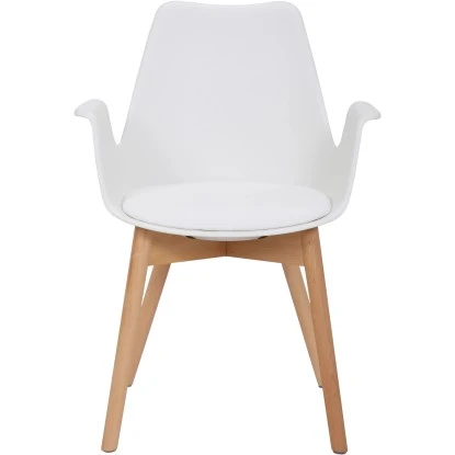 Durch das pflegeleichte Polypropylen ist die Sitzfläche einfach zu reinigen, sodass der Stuhl am Essplatz in Küche oder Esszimmer ideal eingesetzt werden kann. Für Sitzkomfort sorgen die Armlehnen sowie ein PU-Sitzkissen in gleicher Farbe wie die Sitzschale.