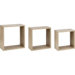 Für stilvolle Wandgestaltungen in Ihrem Zuhause eignet sich das 3-teilige Kubus-Set Meddon. Es stellt Ihnen drei unterschiedlich große Kubus-Regale zur Verfügung, die ein quadratisches Design besitzen. Sie eignen sich zur Platzierung von Kleinpflanzen, Bilderrahmen oder anderen Dekoartikeln. Gefertigt sind die Wandregale aus hochwertigen MDF-Holzwerkstoffen. Dank der beschichteten Oberflächen gestaltet sich die Reinigung denkbar einfach.