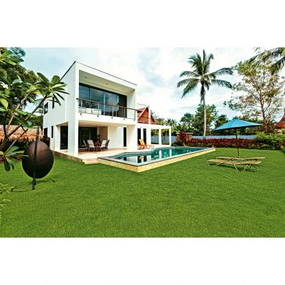 Der Kunstrasen Genus Grün Breite 400 cm Meterware ist der ideale Belag für Balkone und Terrassen. Die Oberfläche ist einer echten Rasenfläche nachempfunden, sodass beim Laufen ein echtes Rasen-Feeling aufkommt. Er hat eine Polhöhe von 15 mm und ein Gesamtgewicht von ca.1.200 g/m². Der Rücken besteht aus Latex und ist nach DS rutschhemmend. Das Polmaterial besteht aus Polyethylen und Polypropylen.
