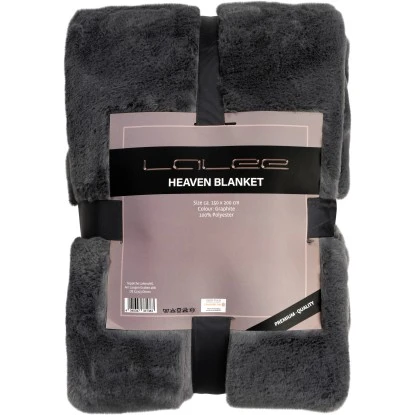 Lalee Wohndecke Heaven in der Farbe Graphite und der Größe 150 cm x 200 cm. Diese kuschelweiche Kunstfell Wohndecke aus flauschig weichem Material sorgt für eine gemütliche Wohlfühlatmosphäre und ein luxuriöses Wohnambiente. Das Material besteht aus 100 % Polyester. Farblich und qualitativ ist die Decke optimal auf die gleichnamigen Heaven Kissen und Heaven Teppiche abgestimmt und bietet so individuell kombinierbare Gestaltungsmöglichkeiten.