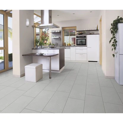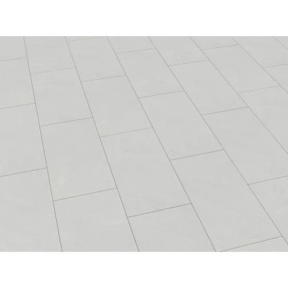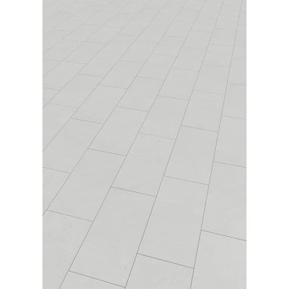 Der Laminatboden überzeugt mit einer täuschend echten Fliesenoptik in hellem Schiefer. Die authentische Steinoptik kommt der eines echten Steinbodens sehr nah. Unterstützt wird der Look durch die umlaufende V-Fuge, die das Gesamtbild noch realistischer macht. Mit seiner neutralen Farbgebung bietet der Laminatfußboden genügend gestalterischen Raum für Möbel aller Stilrichtungen.