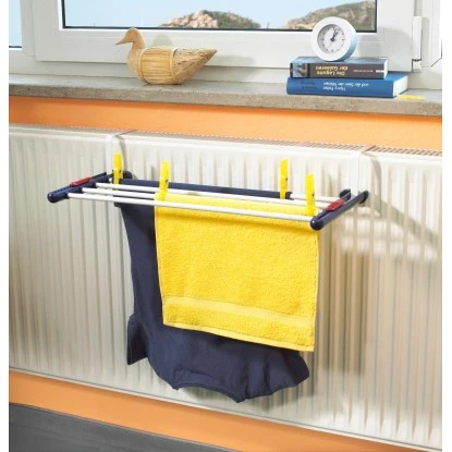 Der Universaltrockner Quartett von Leifheit hält, was sein Name verspricht. Ob an Flach- und Rippenheizkörpern, Fenstern, Balkonen, Türen, Duschen oder Geländern, dieser Wäschetrockner ist universell einsetzbar. Er bietet variable Aufhängemöglichkeiten an Gegenständen mit einer Tiefe zwischen 1 bis 11 cm. Mit seinen 2 m Trockenlänge ist der Universaltrockner perfekt geeignet für die kleine Wäsche zwischendurch. Die Trockenstäbe haben die ideale Passform für Wäscheklammern und verhindern harte Andruckkanten an der Wäsche. So wird Ihnen das Bügeln effektiv erleichtert.