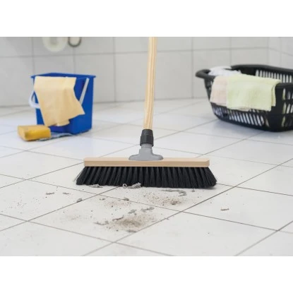 Der Besen verfügt über ein Stielloch zur Aufnahme von Besenstielen mit einem Ø von 24 mm – 28 mm. Empfohlen wird eine Stiellänge ab 120 cm. Im Lieferumfang enthalten ist der Riegel mit Borsten und Stielverbindung.