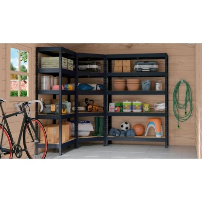 Das Metall-Eck-Schwerlast-Steckregal Rivet 180 cm x 90 cm x 45 cm x 65 cm in Anthrazit eignet sich ideal für die verschiedensten Einsatzbereiche und sorgt überall für Ordnung – egal ob im Büro, im Keller, im Vorratsraum, in der Garage oder in der Werkstatt. Dabei ist es insbesondere für schwere und sperrige Gegenstände geeignet und lässt sich schnell und einfach auf- und abbauen.