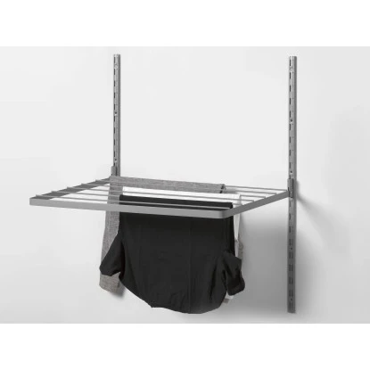 Dieser Metall-Kleiderständer ist ein echtes Multitalent und eignet sich zum Aufhängen, Trocknen und Aufbewahren Ihrer Kleidungsstücke. So schaffen Sie mehr Platz und Ordnung für Ihre Wäsche. Dank der Wandmontage nimmt der Kleiderständer nur wenig Fläche ein und eignet sich damit auch für kleine Räume. Gefertigt ist er aus einem Mix aus Metall und Kunststoff, womit er stabile Eigenschaften besitzt und langlebig ist.