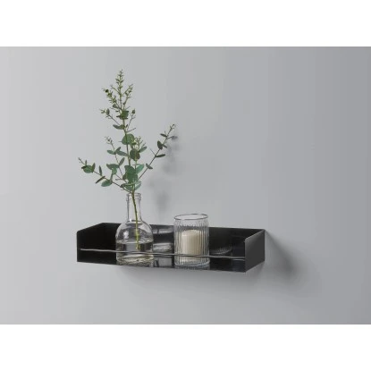 Das Metall-Regal verfügt über einen praktischen Regalboden, auf dem Sie nach Belieben schöne Wohnaccessoires wie Vasen und Kerzen, Bücher oder auch Zimmerpflanzen platzieren können. Die maximale Tragkraft beträgt 3 kg. Zur Befestigung wird das Regal direkt an der Wand montiert.