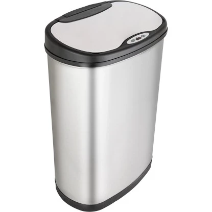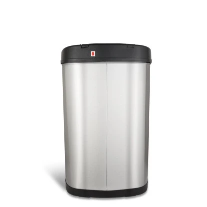 Der Mülleimer mit moderner Infrarot-Technologie zeichnet sich durch seine besonders praktische sowie hygienische Abfallentsorgung aus und erspart das Berühren des Deckels. Stattdessen öffnet sich der Deckel automatisch bei Annäherung und schließt nach 5 Sekunden. Um den Deckel für eine längere Zeit zu öffnen, sind die Hände in Sensor-Reichweite zu halten oder die „Open“-Taste zu drücken. Er verfügt über einen Spannring zum Befestigen von Müllsäcken am Abfalleimer. Das Fassungsvermögen beträgt 50 l und ist für standardmäßige Müllbeutel von bis zu 50 l bis 60 l geeignet. Die Maße des Abfalleimers sind 68,5 cm x 39 cm x 25 cm (H x B x T). Mit seinem Gehäuse aus Edelstahl verleiht er eine moderne Optik und ist zudem leicht zu reinigen. Fingerabdrücke sind einfach mit einem angefeuchteten Tuch zu entfernen. Der Fußständer besteht aus schwarzem Kunststoff und verhindert ein Verkratzen des Bodens. Die 3 x C Batterien sind separat erhältlich.