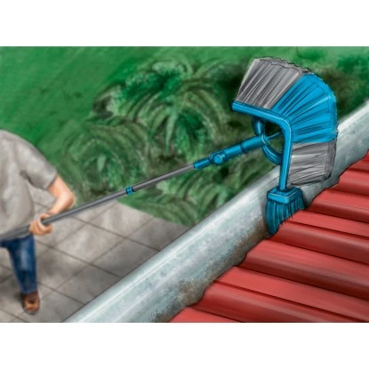 Der OBI Dachrinnenbesen 2-in-1 eignet sich ideal zum Reinigen von schwer erreichbaren Stellen wie der Dachrinne. Er besteht aus einem Eckbesen, einer Eckborste sowie einem bis zu 3 m teleskopierbaren Metallstiel, der im Winkel individuell eingestellt werden kann. Das Maß des Dachrinnenbesens beträgt 110 cm x 300 cm.