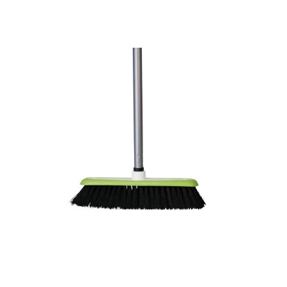Der grün-weiße OBI Zimmerbesen aus Polypropylen ist eingestielt, verfügt über eine umlaufende Gummierung und ist damit für alle Böden geeignet. Der Besen hat die Maße 137 cm x 30 cm x 8 cm.