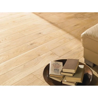 Die Massivholzdiele aus Eichenhenholz mit einer eleganten Maserung zeichnet sich durch die helle Holzart aus, die einen lebendigen Charakter und eine freundliche Atmosphäre vermittelt. Dank Nut- und Feder-System ist sie einfach zu verlegen und kann je nach Untergrund, verschraubt oder verklebt werden. Eichenholz ist der Klassiker unter den Holzarten. Ein traditionelles Holz, dennoch zeitlos und immer im Trend.