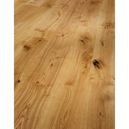Der Holzparkettboden ist bereits wohnfertig behandelt und daher zum Verlegen vorbereitet. Er verfügt über eine Dielenstärke von 11,5 mm und eine Nutzschicht mit einer Stärke von 2,5 mm. Diese besteht aus echtem Holz und kann bei Bedarf im Nachhinein abgeschliffen werden. Die Fugen in den Holzdielen verändern nicht nur etwas an der Optik. Sie schützen die Kanten der Dielen vor Abnutzung und machen den Parkettboden somit länger haltbar. Sollten Sie einmal Wasser verschütten, ist der Boden durch seine Versiegelung besser geschützt. Die lackierte Oberfläche macht den Parkettboden sehr pflegeleicht.