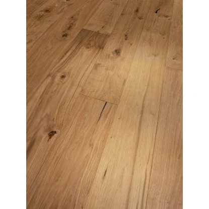 Der Holzparkettboden ist bereits wohnfertig behandelt und daher zum Verlegen vorbereitet. Er verfügt über eine Dielenstärke von 14 mm und eine Nutzschicht mit einer Stärke von ca. 3 mm. Die Nutzschicht besteht aus echtem Holz und kann bei Bedarf im Nachhinein abgeschliffen werden. Durch die von Hand bearbeitete Oberfläche kann es zu Abweichungen bei der Nutzschicht kommen. Die Fugen in den Holzdielen verändern nicht nur etwas an der Optik. Sie schützen die Kanten der Dielen vor Abnutzung und machen den Dielenboden somit länger haltbar. Kleine Kratzer und Abnutzungen sind im Verhältnis zu einem lackierten Parkett deutlich leichter zu beseitigen.