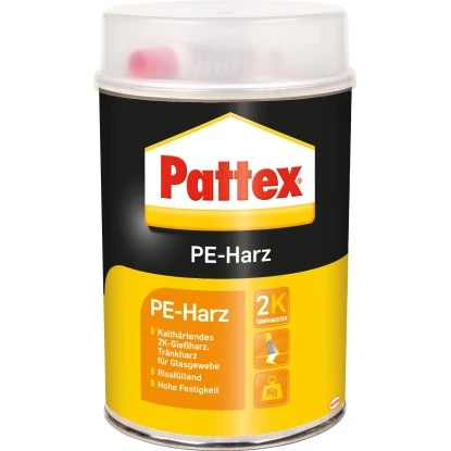Der Pattex PE-Harz ist ein kalthärtendes 2-komponentiges Harz, das als Gießharz und Tränkharz für Glasgewebe eingesetzt werden kann. Er ist ideal zur füllenden und schlüssigen Verbindung von Rissen in Mauer- und Betonteilen sowie zur Verbindung von Glasmatten oder Glasgewebe zur überbrückenden Verstärkung geeignet.