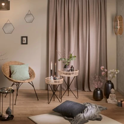 Unser minimalistischer Interior-Trend im Japandi-Stil verbindet harmonisch Wohnlichkeit und Funktionalität miteinander. Schwarze Details auf Möbeln oder Accessoires sorgen für eine optische Tiefe, die dem Zuhause eine beruhigende Atmosphäre verleiht. Fernöstliche Einflüsse und typisch asiatische Elemente, wie Kirschblüten, kombiniert mit natürlichen Materialien – so kommt dein inneres Chi ins Gleichgewicht. Gestalte deine Ruhe-Oase Zuhause mit dem Wandregal aus unserer Trendkollektion und lass‘ deine Seele baumeln.