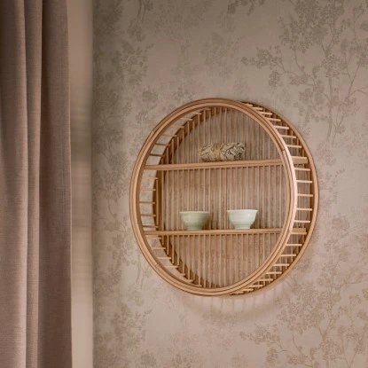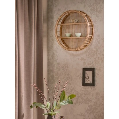 Das Rattan-Wandregal ist eine auffällige Wanddekoration für den Flur oder andere Wohnbereiche. Es passt ideal zu unserer Trendkollektion Minimalist Zen und eignet sich für schmale Gegenstände, Deko und kleine Blumentöpfe.