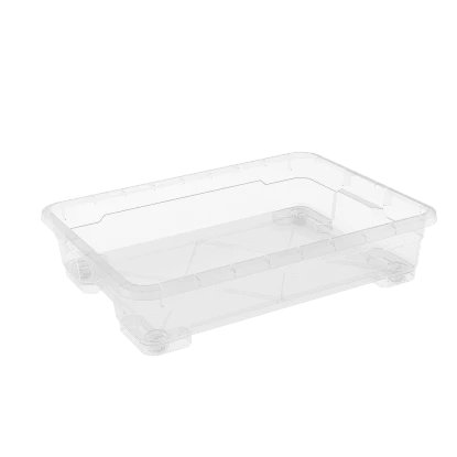 Die Santos Box Unterbettbox mit einem Stauvolumen von 52,5 Litern ist eine transparente Unterbettbox, die speziell für die Aufbewahrung von Bettwäsche und anderen Gegenständen entwickelt wurde. Sie ist mit vier Rollen ausgestattet, was den Transport und die Handhabung erleichtert. Die Unterbettbox ermöglicht eine saubere und platzsparende Aufbewahrung. Durch ihre transparente Ausführung können Sie leicht erkennen, was sich in der Box befindet, ohne sie öffnen zu müssen.